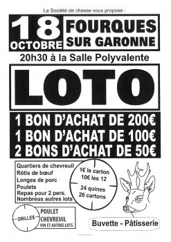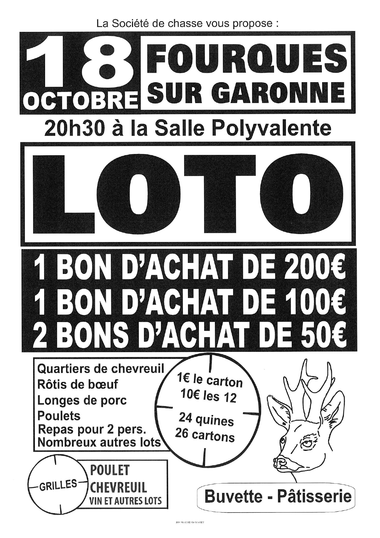 Vous êtes ici : Accueil > LOTO DES CHASSEURS LE 18 OCTOBRE A 20H30