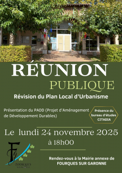 Vous êtes ici : Accueil > RÉUNION PUBLIQUE RÉVISION PLU LUNDI 24 NOVEMBRE A 18H