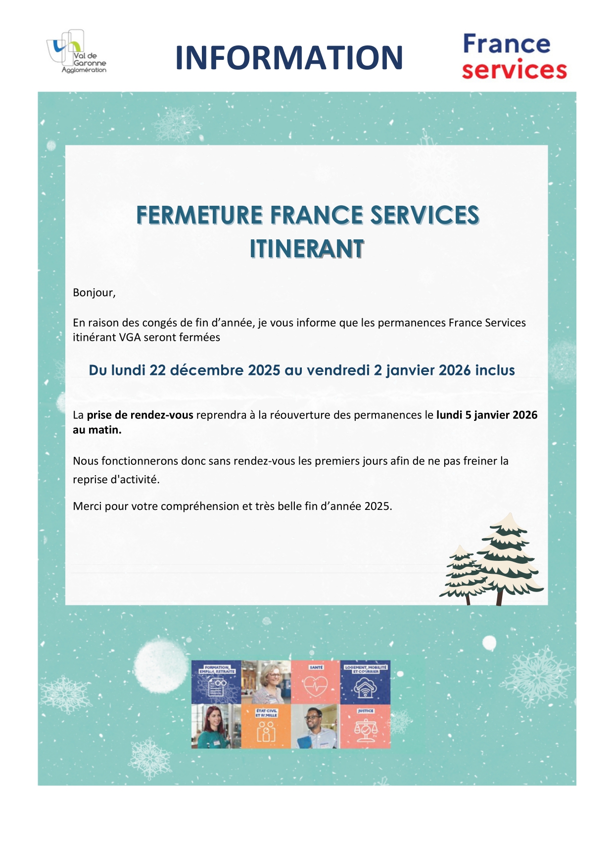Vous êtes ici : Accueil > FERMETURE FRANCE SERVICES HIVER 2025