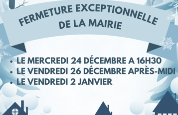 Vous êtes ici : Accueil > FERMETURE EXCEPTIONNELLE DE LA MAIRIE