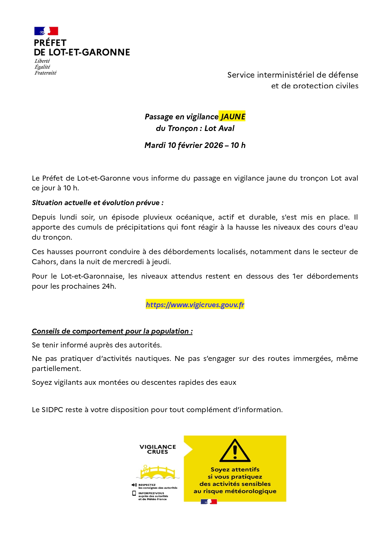 Vous êtes ici : Accueil > PASSAGE EN VIGILANCE JAUNE CRUES LOT AVAL